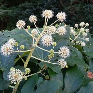 👺テングノハウチワ🌿 ヤツデ 八8 5〜7葉は奇数にさける!! 末広がり 縁起物Ü 魔除けの効果も有る٩( ᐛ )و🫘👹 白いまん丸お花 😻 可愛いね𓂃 𓈒𓏸❁⃘🐿️🍀