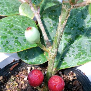 葉裏には安田大サーカスのヒロ君がいる(笑) 【フィカス ゴールドコイン】ちゃん🤩🤩🤩 はぁ?!と思った方は6月21日のpicごらんください😅 葉の表面には砂金いっぱいザクザク✨✨✨ 黄色のポチポチ見えますか? それよりこの赤いタマタマが気になっちゃって(笑) この実はこの後どうなるのか…🧐 生産者さんに伺ったところ わからない。 …えーーー😓 そんじゃ私が見守りますとお伝えしました🧐🧐🧐