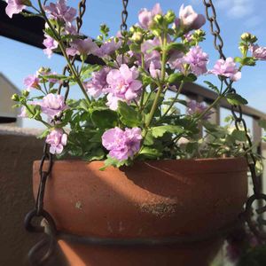 おはようございます😃☀ 今朝も晴天です。 大阪は今日、暑くなるそうです💦 バコバ スコーピアを吊り鉢仕立てにしました。 八重咲きで大輪の花が沢山咲きます😀✨