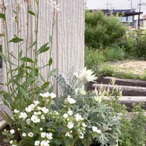 おはようございます☀ ヘリクリサムペティオラレ 2つだけ花が咲きました。 近所のはいっぱい咲いてるのに、なんでだろう?🤔 シルバーの葉はわさわさ茂ってるんですが... . この春、イングリッシュラベンダーの足元に植えたバコパが 繰り返し何度も咲いてくれてます。 さすがにもう終わっただろうと思っていると、 2週間ほどしてまた蕾がついてわらわらと咲きだす... というのを3回くらい繰り返しています。 しかも、ラベンダーの根元に隠れていたコたちは 自分で前の方に這い出し、 さらに隙間をぬって上手に広がっています。 安売りしていた苗を2つ、ちょちょっと植えただけでしたが 予想以上の可愛さと活躍です😊