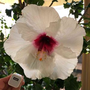 きょうのハイビスカス このハイビスカス「マドンナ」という品種でした。 ゴージャスでデッカイ花が咲きます。 デッカイ‼︎ってどの位かと言うと iPhone USBプラグ比較で このくらいです(๑′ᴗ‵๑) きょうは2輪咲きました。 蕾が10個あります! まだまだ楽しめます(๑′ᴗ‵๑) ……… #きょうのハイビスカス #aloha #alohanob #hawaii #gardening #マクロ #ハイビスカス #ハイビスカス🌺