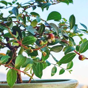今年、実生のグァバが紅葉してきた😊 このまま棚で冬越せるかな❓🤔