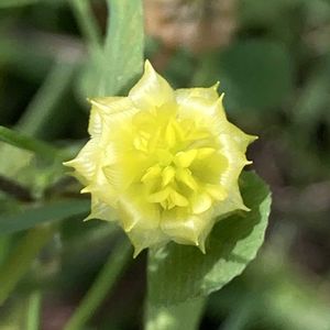 クスダマツメクサ(薬玉詰草) マメ科シャジクソウ属 黄色の花の群生の所に行ってみると クスダマツメクサでした🌼 ①筋が入った花弁が 飴細工のようです💛🥰 ④受粉した順に花弁が膨らんで 一個ずつ種子を包んで 下向きになって残ります🤎😊🎶