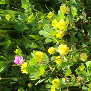 クスダマツメクサ マメ科シャジクソウ属 黄色い大きな花のクスダマツメクサ。