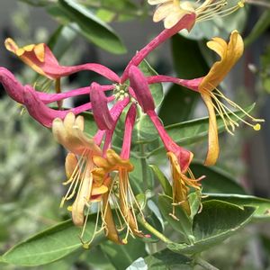 雨予報がどんどんズレていく〜💦明日雨予報だったから夕方の水やりはサボろうと思っていたのに、いつの間にか晴れマーク☀️ 暑い中でもよく咲くハニーサックル。 今年はずっと咲いているかも😁 1年のうち1週間くらいしか花がない宿根草より、長ーく楽しめるお花の方がありがたい。 ハニーサックルは◎です👍