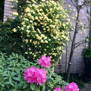 💗🌼凄い、凄い⤴⤴🌼💗 これは、ご近所のおうちの西洋シャクナゲよ〜〜! それが、見上げるような高さでお花がいっぱい💗🌼💗🌼💗 一つ一つのお花が大きく……! それが、たくさんお花つけてるの〜〜! 思わず『👀👀うわぁ〜〜凄い⤴⤴』と声を出してしまいます! 奥さんのお話ですと、小さな苗を買ってきたのがこんなに大きくなったとの事! 色が鮮やかだから、遠目もきいて、とても目につきます! 私も引かれて行ってしまいましたよ💓💓💗🌼💗💓💓 まぁ〜〜お見事です💝💝