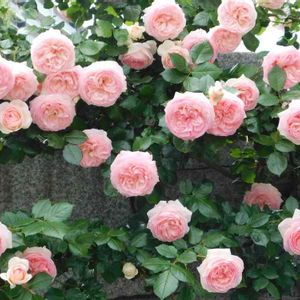 香りのバラのトンネルは、数種類の蔓バラで構成されています。 青空に映えます♪