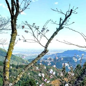 桜山公園の桜と、遠くに望む市街地。 「三波石(さんばせき)とともに名高い 冬桜」(上毛かるた「さ」) 頑張れ❗日本‼️ ✊‼️