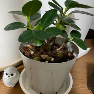 パンダガジュマル🌿 長年ガジュマル好きで今は中小2鉢ずつ、根付いた挿し木4本あるけど、初のパンダちゃんをお迎え🐼 小さいけど枝振りのカッコ可愛い子を発見😍 小さくてまるっこい葉っぱが可愛らしい💗 接ぎ木じゃないから成長はゆっくりらしい🌿 水やりは普通のガジュマルより難しい(葉が落ちやすい)らしい🤔 あと植え替えドキドキ葉を落としやすいらしい🍂 そう言われるとちょっとドキドキ💦 根を崩さず植え替えたから大丈夫かな🙏 ゆっくり、しっかりした幹に育って欲しい🐼💗