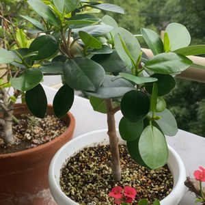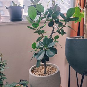フィカス ミクロカルパ 丸葉 パンダガジュマル 去年の秋頃お迎えした子 このサイズ感だとガジュマルというよりペペロミアみたいな見た目 今のところ生長はゆっくり目 屋外管理に変えてみよかな?