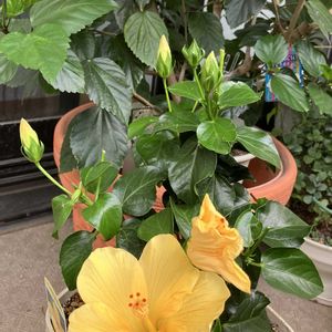 我が家のニューフェイス 赤いハイビスカス🌺の前に 黄色のハイビスカスお迎えしました 大好きなお花です💛