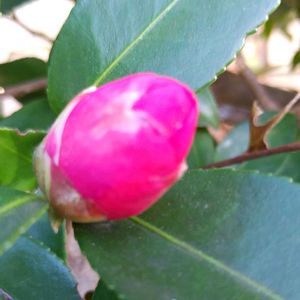 やっと蕾から開花へ進んだ 我が家の山茶花です