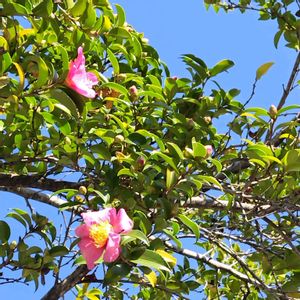 実家の庭 ・2年間咲かない紫陽花 ここに来て新しい葉っぱがモリモリ ・山茶花 乙女さんと呼んでいます 約3年前 心身疲弊した母にプレゼント。沢山の花を咲かせてくれます😍