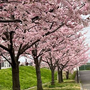 帰り道です〜 こちらは水元公園運動場の桜🌸並木です〜 ソメイヨシノより少し濃いめのピンク💕