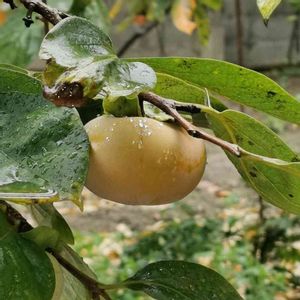 雨の中柿も秋まで頑張ってます🌿 渋柿なので 秋には吊るし柿予定です
