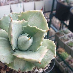 【パキベリア属 ヒアリウム】 Pachyveria 'Hialium' 別名 ヒアリューム ヒアリアナ×千代田の松の交配種 ネームタグは 【エケベリア ヒアリウム】🏷️ カクト・ロコさんのタグは、 パキフィツム属になってますが、 交配式は E.elegance var.hyalina×P. longifolium なので、パキベリア属かと? 野ばらの精や大和美尼、 銀武源などを作出された 日本が誇るハイブリター、 根岸利和氏の交配になります 「エケベリア 野外0℃ OK」 と書かれた生産者さんの苗ですが、 以前こちらから購入した時、 【象牙ヒアリウム】と 象の絵付きで書かれてました フォロワーさんのタグには、 【像牙ヒアリウム】と(=o=;) 「象」じゃなくて「像」に、 2人で盛り上がった過去ありwww スズキサンチサン、オゲンキデスカ? 以来、この大理石のような ウォーターマークを見ると 象を連想してしまいます🐘