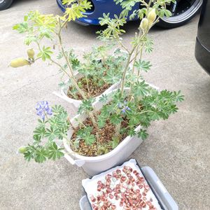 傘葉ルピナスちゃんの種を収穫😆🎶 一昨年2株迎えて種穫って、今年は30株位咲いて、穫れた種は100個以上❓️😳(まだ穫ってない種も。。。) 植物の力って凄いなぁ〜✨✨ めっちゃ可愛いお花だけど、こんなに蒔いたら大変な事になりそう😂 花は短い期間だけど、葉っぱも可愛いから大きなプランター揃えてルピナス畑かな🤭