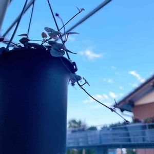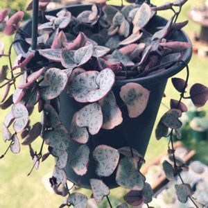 雨が上がって 蒸し蒸し💦嫌な天気です☁️ いい感じに垂れ下がってくれた ♡斑入りハートカズラ♡ 🏷ネックレスの日に参加します🤗