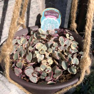 斑入りのハートカズラ♥️、 ゲットしました〜🎶 直売所で見かけた時から 気にかけていたのです👀💕 我が家の多肉ちゃん棚に お仲間入り…🌵 元気に育ってね💓 (^O^☆♪🍀