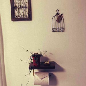 トイレではありません。 居間の一画。 お犬様のためにペーパーホルダーを購入しました。 赤のポットとハートカズラがとても馴染んでくれて、なかなか気に入ってます。