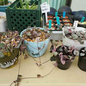 ネックレスの日🏷 毎月8日は鉢の日🏷 参加させていただきます♾♾♾✨ 台風避難場所から移動時に 長い長いルビネさん 落っことしました😅 葉が幾つか取れたけど これだけモリモリだと気にならないかも😆 ピーチネックレスも元気です ここにはいませんが マーブルグリネさんは 夏の間に数粒になってしまいました😢 多分涼しくなっても復活しないよね? もう少し置いておくかな? 少し前にお声を掛けてくださった フォロワーのかよさんから 分けていただいたリメ鉢 ブライスちゃんの鉢は 初めて見ました💕 とても可愛かったり素敵な鉢は なかなか土を入れられず 観賞用になってます 手前の白い鉢は ちゅりさんのフェアリー鉢 天使の日にも いちごの日にも使えるわ💕って 思っているのですが 結局ネックレスの日の登場が多いです