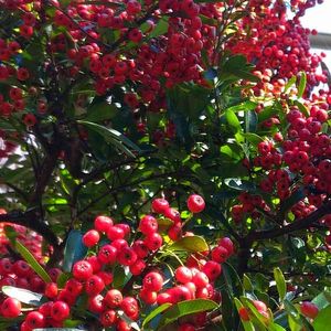 ピラカンサスが、真っ赤に色付いて来ました。 小鳥さん達にも、いっぱいのご馳走が出来ました。 今朝、メジロが二羽来ていました。そろそろ、冬の鳥さん達が来てくれるでしょう。