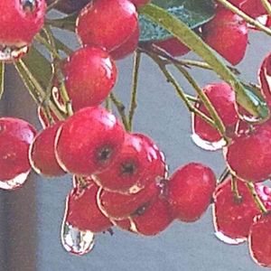 昨日の雨に洗われたピラカンサスの実。 朝の光に輝いていました。