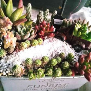 投稿したと思ってたら、出来てなかった(´Д⊂ヽ💦 年末にリースと一緒に作った箱庭的なヤツ🍀 少しセダムが伸びてあっちこっち向いてるけど、 まぁ、まだ整ってる方かな〜✨