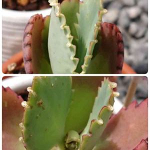 うちの子宝草🍀 育て方検索すると、暑さに強いと書いてあるけど、日が登る時間~am11:00頃までしか日の当たらない半日陰で育ててるのに、何故か子供がカリカリ… 新芽のとこもカリカリ… しょうがないので遮光45%のとこに入れて朝も若干遮光してるのに、やっぱりカリカリになって、子供が育たない⤵️⤵️ 水不足かなぁ?とは思ったけど、1週間に1回はドバドバ水あげてるし、天気が良くてカラカラに乾いてると感じるときはそれよりも早めにあげたりもするのに… むしろ、水をあげすぎかなぁ?と心配なくらい。 水は朝8時前にあげるか夕方にあげてるし、改善点がわからない…😥 風通りも洗濯物が飛ぶくらい良い場所! なんでダメなんだろー💨 誰かこうした方がいいとかアドバイスありましたらよろしくお願いします( TДT)