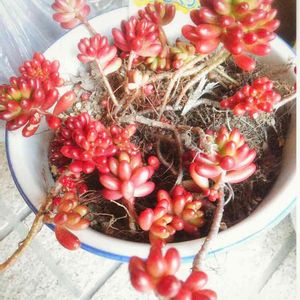 こんばんは☆ 仕事から帰ったら玄関に真っ赤な多肉が!! ご近所さんが鉢ごとくれたそうです(笑) ビニールにも同じ子が!!すご でもなんという子?? オーロラさんとか虹の玉?? パパが地植えにするらしいので、自分用にぱちぱちさせてもらいます♪(*´∀`)