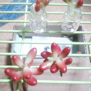 こんばんは☆ 今日はお休みでカインズ行ってきました♪ 多肉もエアープランツもいっぱいで癒されたぁ♪ もっ○りしたカプトメデューサエを手に持っていたけど、結局手放してしまいました…(´-ω-`) なにも刈らずに帰宅Σ(-∀-;) picは発根待ちだった虹の玉です。根が出たのですが、色々時間がなくて植えれずそのままに…徒長してるぅ~!!(泣) 先端部分カットして葉挿し用にもいで、先端は一応瓶にさしてみました。 カットする部分おかしかったかなぁ~(;・ω・)