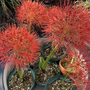 【線香花火】《ヒガンバナ科》 花言葉 「気品」「清らかな心」「富裕」 「永遠の愛」 別名 フットボールリリー 線香花火の名前は、 その花が咲く様子が まるで線香花火の 火花のように見えることに 由来します。 日本では古くから 夏の風物詩として親しまれ、 その優雅な姿は 多くの詩や文学作品にも 登場します。 センコウハナビ(線香花火)は 犬、猫、そして子供にとって 非常に有毒です。 葉、花、球根に危険な アルカロイドが含まれています。