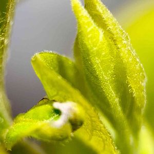 『柿の木🍃』 新緑の季節🍃 柿の木の葉は とても瑞々しい黄緑色💚 そして可愛い蕾がかくれんぼ しています👀🔍 のぞいてごらん‼️