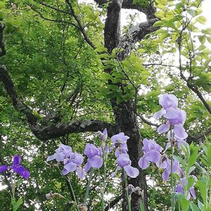柿の木の所のジャーマンアイリス ご近所さんの石垣の上の涼しげなジャーマンアイリス♪ 通る度に下から見上げてしまいます。 🏷️美しき青きドヨウ