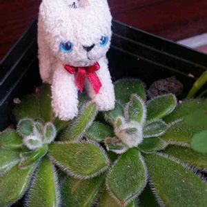 もふもふ対決だぞー! ぬいぐるみなんかに負けないぞ! とがんばってる多肉植物さん
