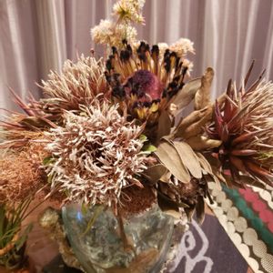 去年のドライフラワープロテアの中に今年のプロテアさんを入れてみました💐 アンティークですね~夏には合わなそう(≧▽≦)