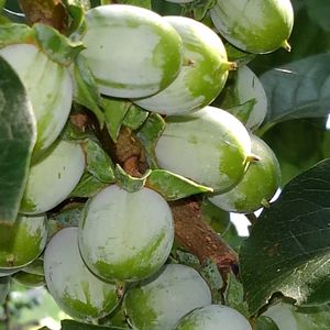2024.6.24 撮影 我が家の柿(前庭) 以前、花を投稿した柿の小さい実が成ってきました 1枚め:ミズシマガキ 2枚め:フユウガキ 3枚め:謎の美味しいカキ 4枚め:マメガキ 我が家のは食べられないですが、今年は何故か あまり成ってないです 因みにミズシマガキ、フユウガキ、マメガキの実は、1本の木に成ります