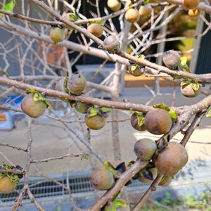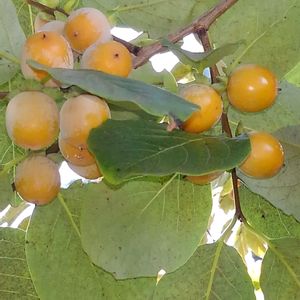 マメガキ 豆柿 木道をあるいていると頭の上にカサッと落ちてきた小さな枝 よく見ると可愛い小指の先くらいの 実が2つ、、 足元を見ると可愛い実がコロコロ、、と 見上げた木にはまだいっぱい実がついていました、風で落ちてきたようです 調べると豆柿でした 勇気を出して食べて見ました 甘い、、、!! 後味にちょっと渋味ものこりました😵💫 木枯らしの日、風がくれた 贈り物でした^_^