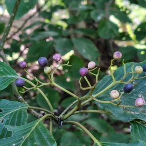 お散歩中に見た樹木(果実/お花)たち… ミズキ(水木) キョウチクトウ(夾竹桃) サネカズラ(真葛)×2=ビナンカズラ コクサギ(小臭木) ⚫︎⚪︎⚪︎⚪︎⚪︎
