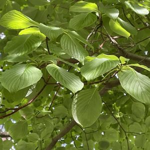ミズキ ミズキ科ミズキ属の落葉高木 分布:北海道〜九州の温帯に自生 生育環境:山地の谷沿いなど。 西日本では山地に限られる ・花期:5月 ・葉柄2〜8㌢と長い ・葉は中央部が膨らんだ広い楕円 形〜卵形 ・枝先に葉が集まって付く ・ミズキの樹形は幾つも階層を作る 樹形なので遠くからでもわかる 葉は枝先に集まり互生するらしいが、実際に観察するととても分かりづらいけど、樹形でミズキだ!と思っていました。 そこにまだ見たことのないクマノミズキというのがあることを知り、クマノミズキは葉を対生につけるらしい。 それからクマノミズキがどこにあるのか探していました。 少し前にやっとどこに行けば見られるのかわかったのですが、なかなか出かけるチャンスがなく、昨日やっと見てきました。 そのクマノミズキは後ほど投稿します。 📷2025/5/9