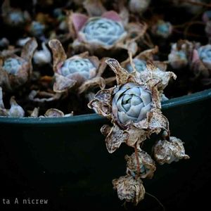 室外機の下から出てきた子持ち蓮華 ランナーの先の子のランナーの子(孫?)も生きている模様。 全部バラして寝かしつけよう🌃