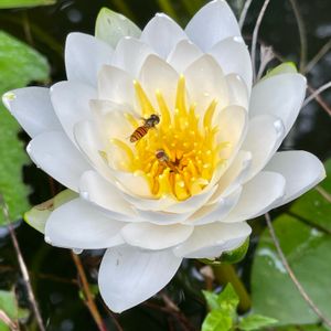 スイレン(睡蓮) たった一つ咲いた花に🐝が群がって! 🐝さん静かに咲かせてあげて😤