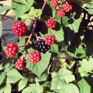 初めてのブラックベリーの収穫😊 甘酸っぱい味が美味しい😋