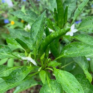 今年は唐辛子🌶も植えてみました。収穫が楽しみです😊 実はこんななり方するなんて初めて知りました😆