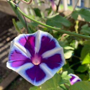 朝顔が咲いています。 この花はもう3年くらいかな? 種とって、次の年に咲かせます💕