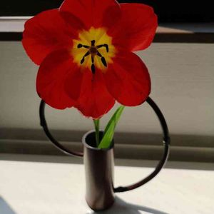 小さく 可愛く咲いてるチュウリップを キッチンの窓辺に…✨ キッチンの前に立つ私を、穏やかにしてくれます🌷~🎶