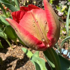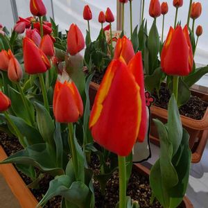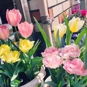 枝咲きチュウリップがさきました。 1球から数輪の花が咲きボリューム満点と書いてあるのですが見ごたえありますよ‼️😃