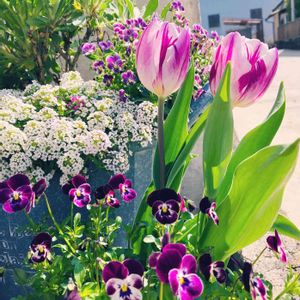 うちのチュウリップさんはまだ葉っぱばかりだけど 友達のお庭に咲いてました🌷🌷🌷
