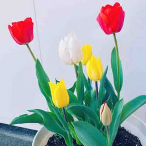 チュウリップ🌷🌷🌷 🏷️真っ赤な火曜日 🏷️可憐な火曜日 駅の改札口に近隣の幼稚園児が育てた球根チュウリップが提供されてました❣️ 通勤、外出時のホッとする安らぎを 有り難う🎶💕