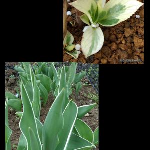 刺芽した紫陽花斑入りが可愛い☘️ 白い縁取りが可愛いチュウリップの葉 黄色に白い縁取りのお花だったと思います💛🍀 🏷️8日は葉っぱの発表会